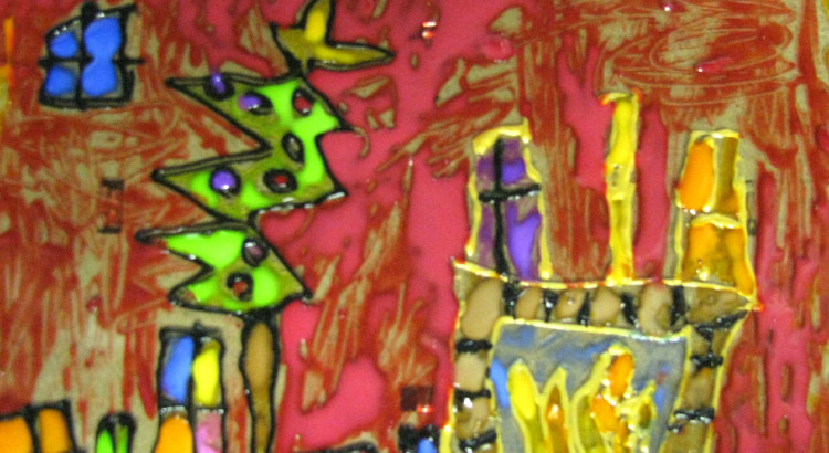 Te obrazki były malowane przez dzieci na szkle farbkami do tego przeznaczonymi. Efekt jest bardzo malarski.